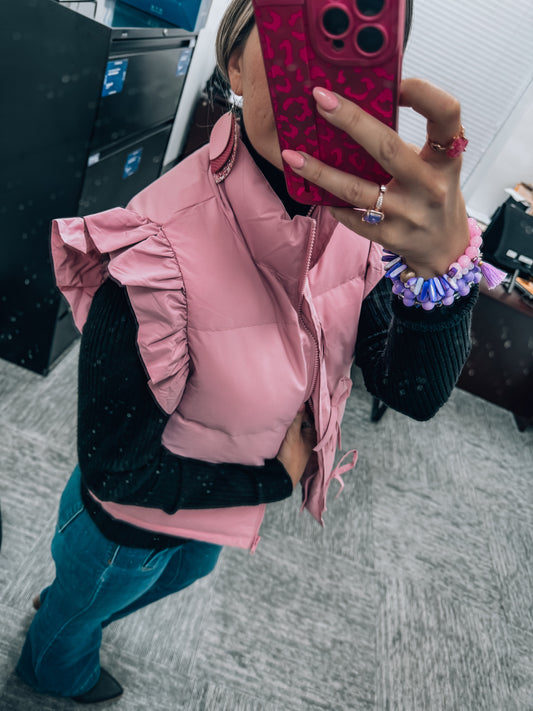 Muave Bow Ruffle Sleeve Puffer Vest