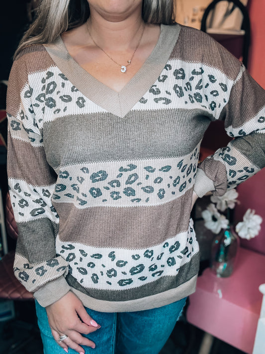Mocha Cheetah Colorblock Striped Top