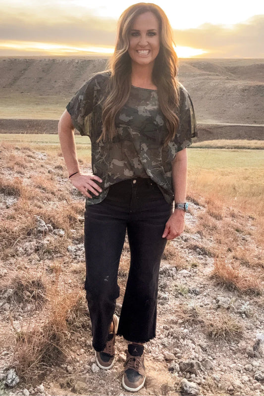 You Can't See Me Mesh Camo Top