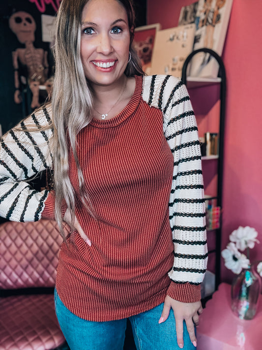 Rustic Reign Striped Sleeve Top